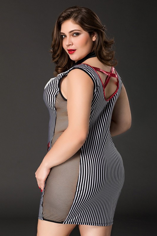 эластичное платье из вискозы, галстук, трусики-стринги, указка, р-р 52